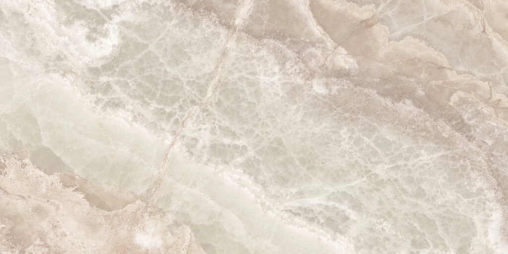 Ez a spanyol prémium padlólap vagy falburkolat a természetes ónixkő mintázatát idézi meg lágy, átmenetes bézs, krém és gyöngyfehér árnyalatokkal, amelyek melegséget és kifinomultságot visznek bármilyen térbe.