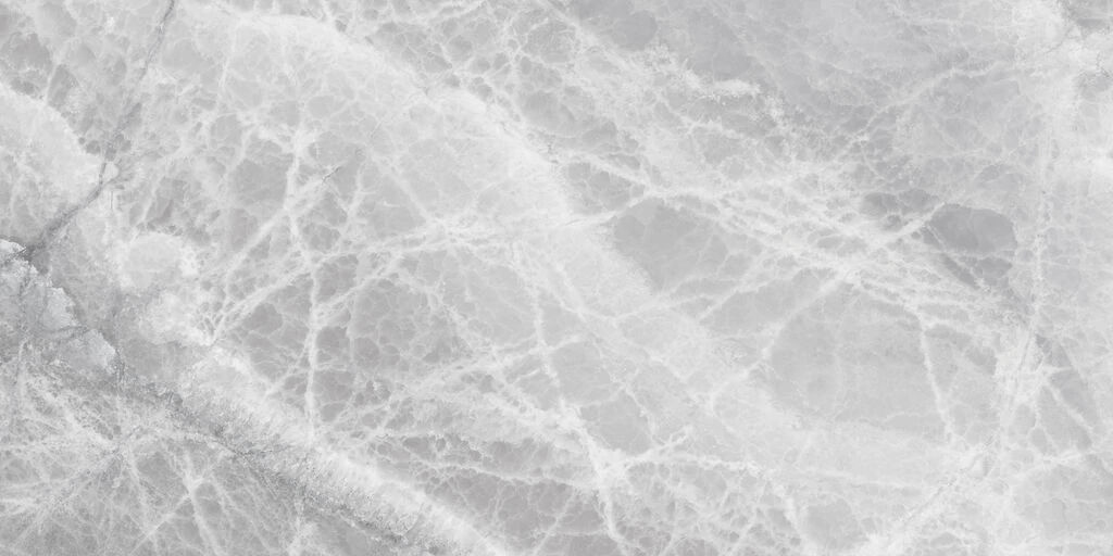 Fal és Padló burkolatok: Egy nagyméretű, világosszürke, fehér erezetű márványhatású burkolat dominál. A felület fényes, tükröződő, ami tovább erősíti a modern, tiszta stílust. A padlólapon halványabb, a falburkolatokon kontrasztosabb az erezet.